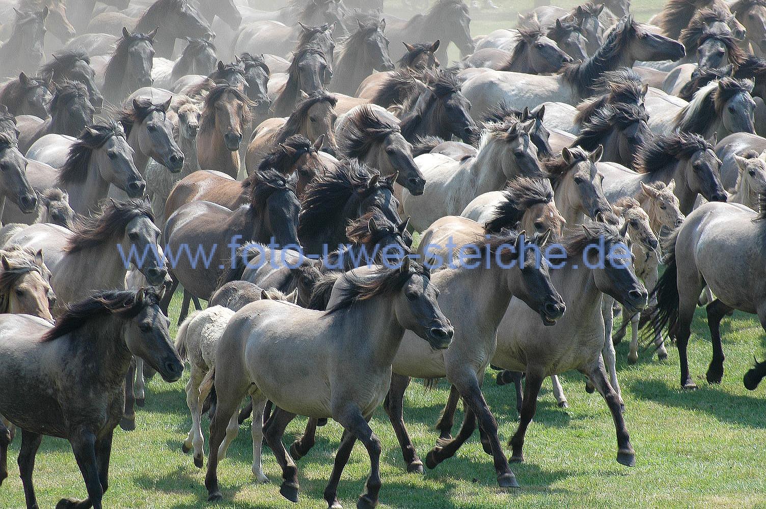 Die Zucht ist aber streng geregelt, um diese Rasse möglichst unverändert und stabil zu erhalten. Dazu gehört, dass jeweils am letzten Samstag im Mai jedes Jahres die jungen Hengste bei einer viel besuchten Veranstaltung von Hand gefangen und versteigert werden. Die Deckhengste leben lediglich in der Zeit von Mai bis September bei der Herde, um die Geburtstermine der Fohlen zu steuern. Die Herde selbst ist in Familienverbände aufgeteilt, die aus verwandten Stuten und ihren Fohlen bestehen und jeweils von einer Leitstute geführt werden.